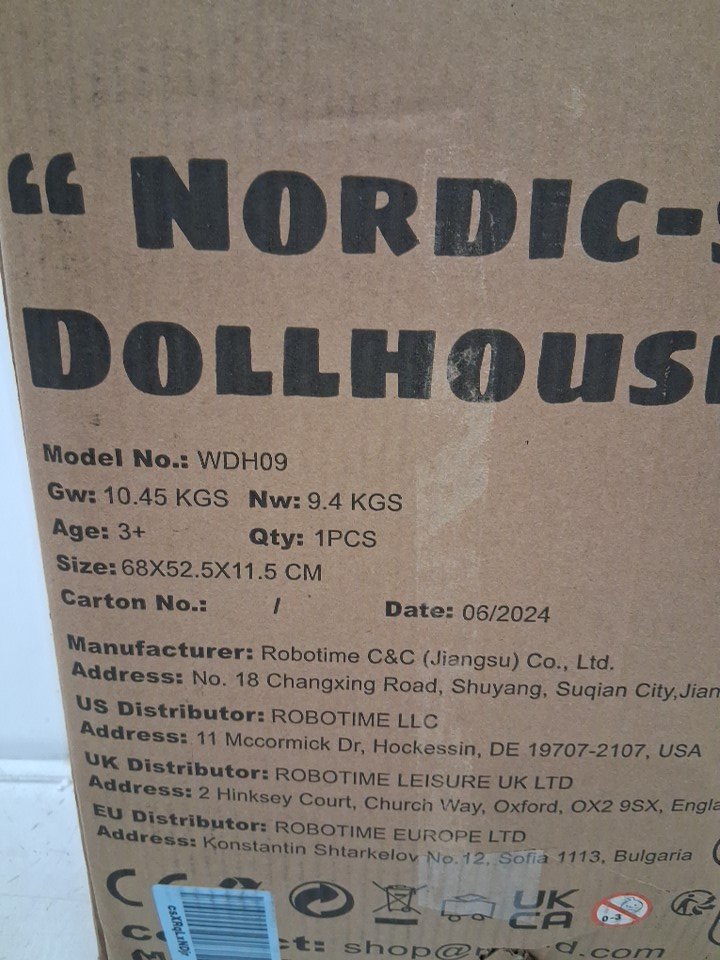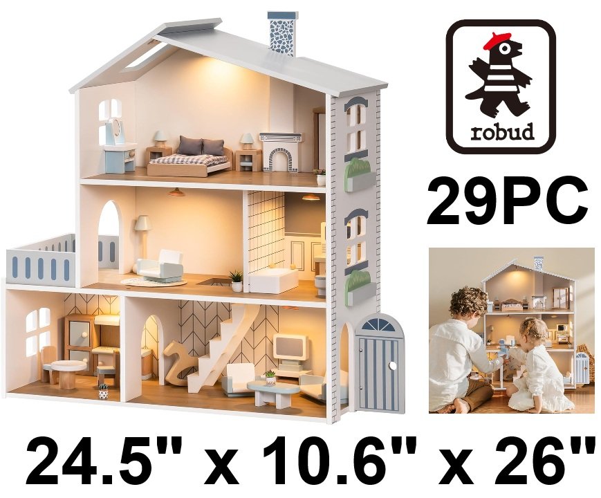 29pc ROBUD Nordic Style Wooden Dollhouse Playset with 6 Rooms & Accessories-24.5" x 10.6" x 26" -multicolored -(model:‎ RB-WDH09)