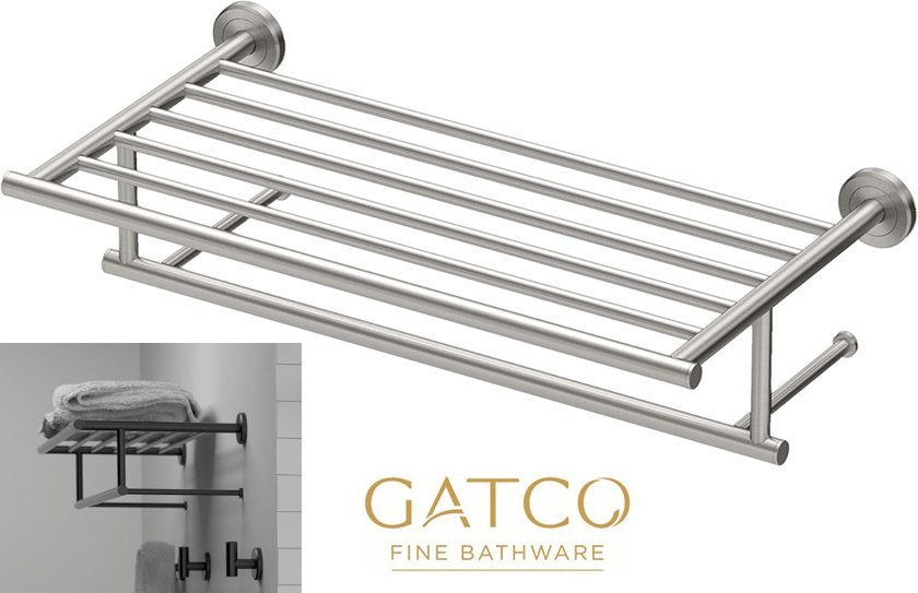 Gatco fine bathware minimalist 2 tier bathroom towel rack - 19.75"x5.25"x10.25" - satin nickel