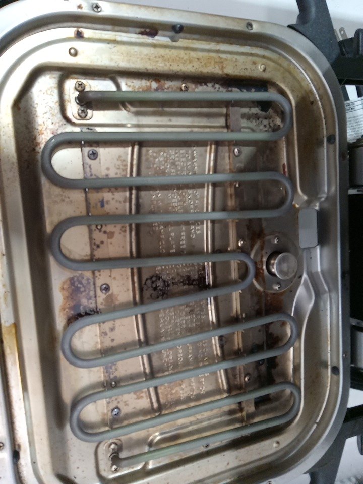 there are heat and cooking marks in the wood pellet holder and on the inner side of the grill, please see photos