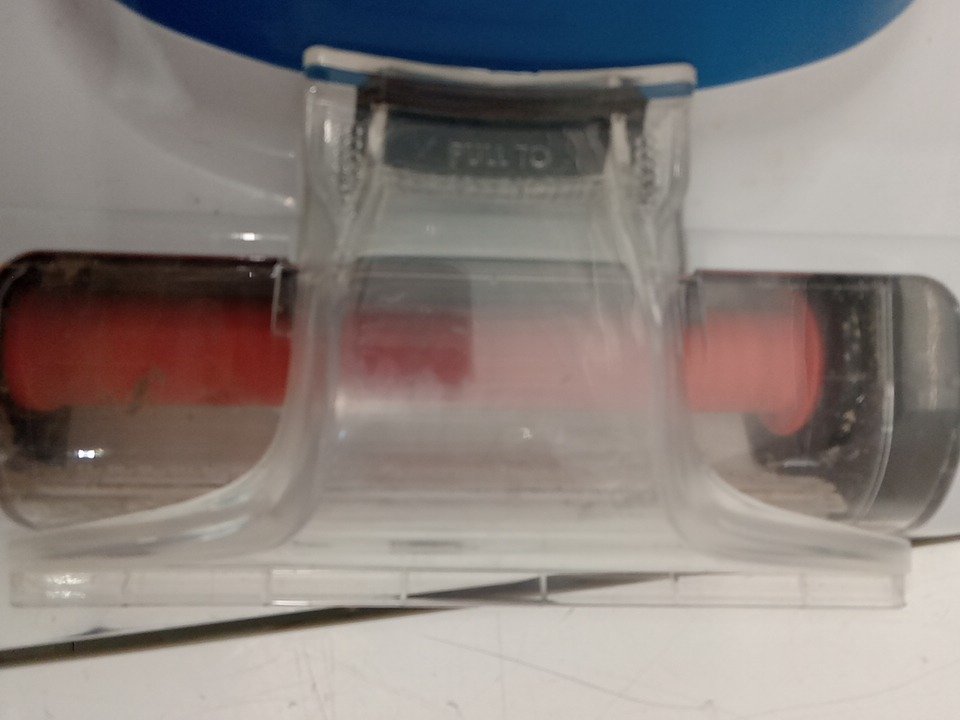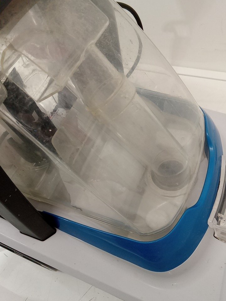 Dirt/cloudy in the vacuum head and tank. Can likely be cleaned. Tested for power only.