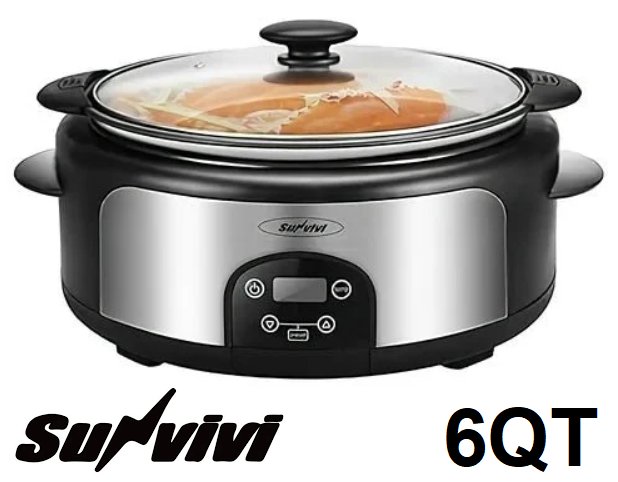 SUNVIVI Slow Cooker, Nonstick Oval Pot with Locking Lid, Delay Timer, 3 Temperature Modes, 8 Pre-Set Functions - 6QT - (MODEL: YD009)