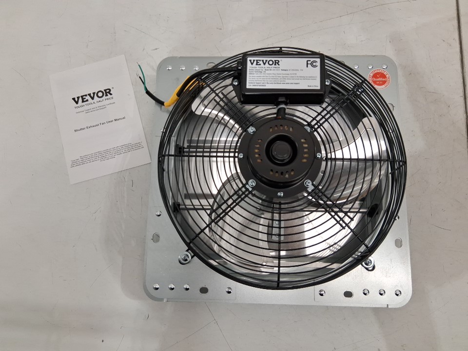 VEVOR Corded Aluminum Wall Mount Shutter Exhaust Fan - 12" - 120V - BLACK/SILVER - (MODEL: AMX-FAG12)