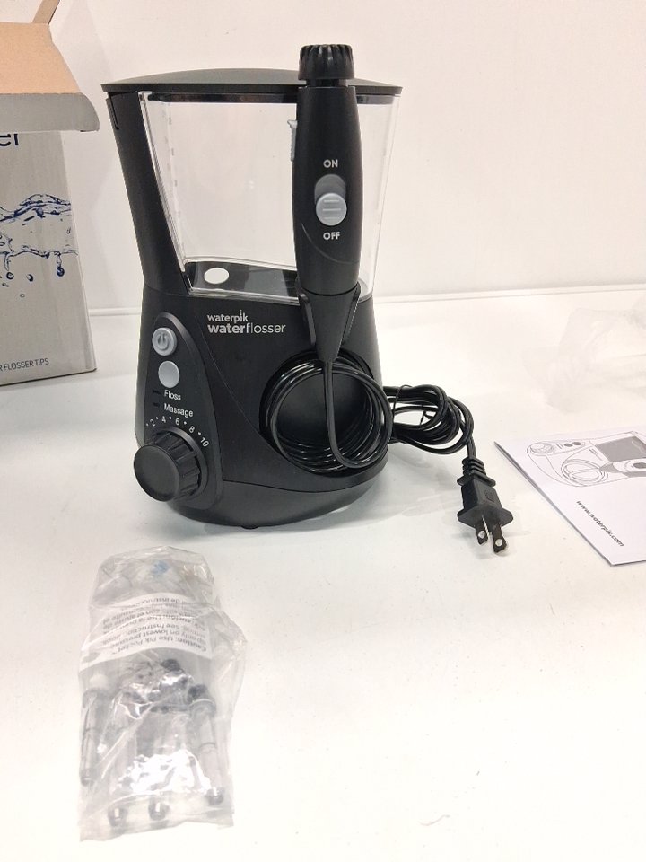 waterpik attachments are open and UNSEALED, and Has water drops in flosser.