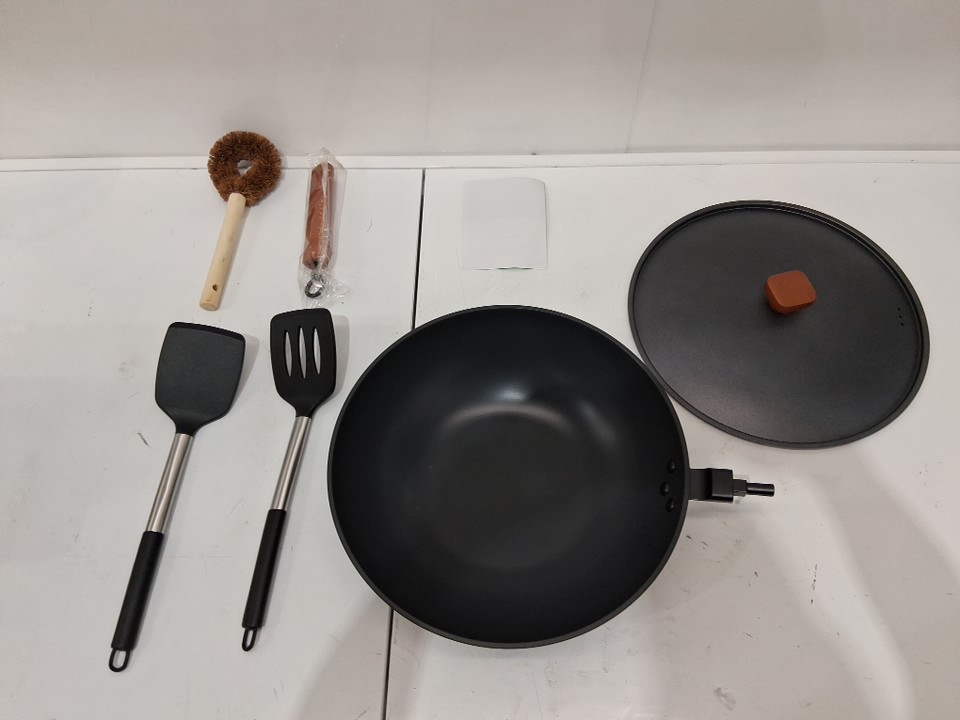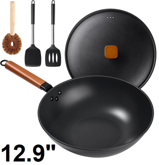 bretor Nonstick Carbon Steel Wok with Lid - 12.9" - black
