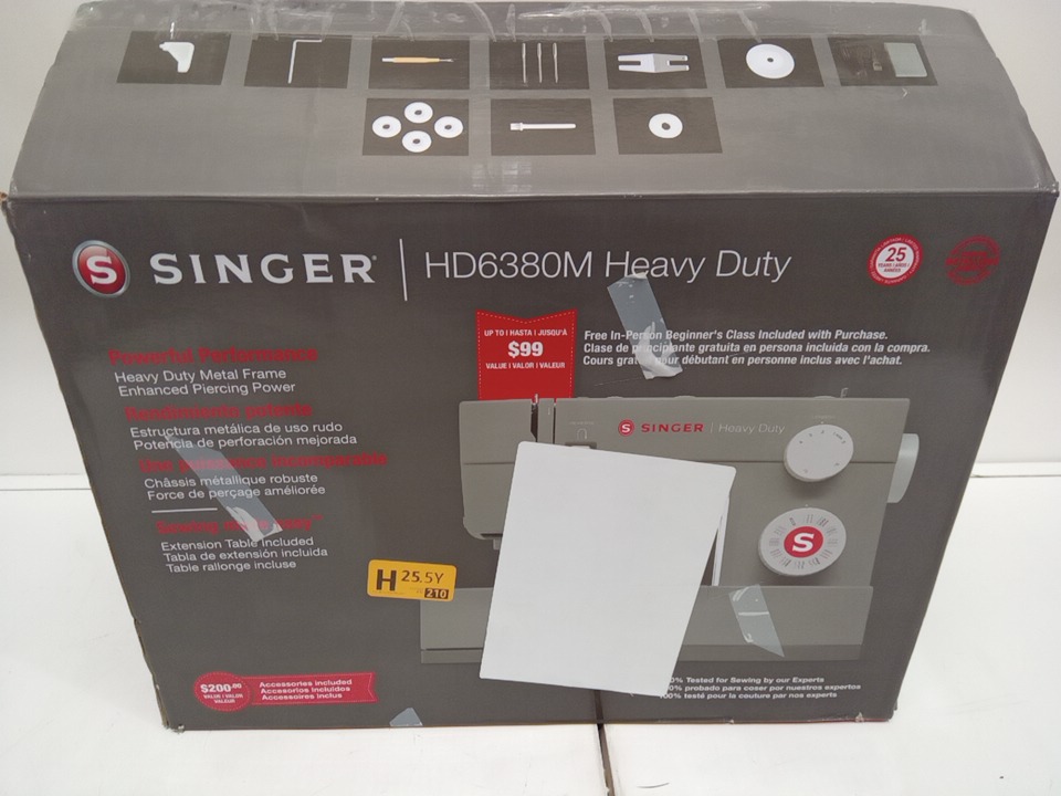 SINGER HEAVY DUTY SEWING Machine with Extension Table & Accessory Kit - Strong Motor with Enhanced Piercing Power, 110 Stitch Applications, Full Metal frame, 1-step Buttonhole & LED Light - GREY (MODEL: HD6380M)