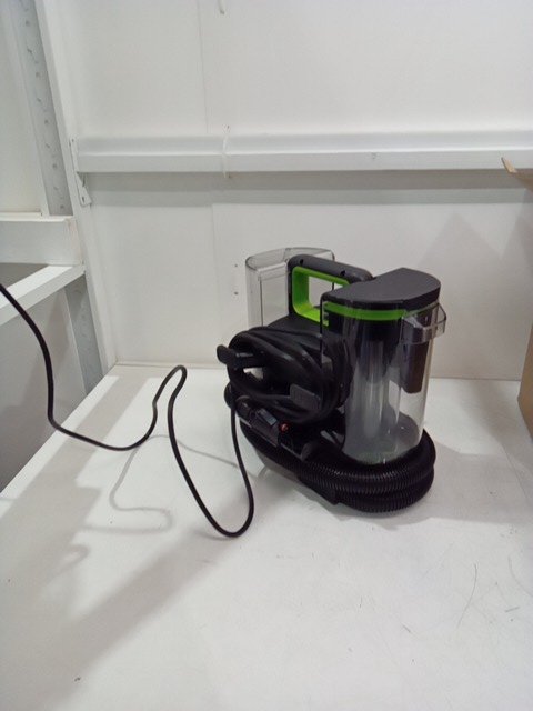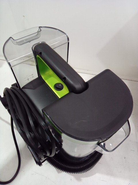 The item is missing both of the nozzles/wands for use, this may be able to be replaced or used with different nozzles. There are water stains and marks inside of the item as well as dirt and pet fur/hair, clean before use. Tested for power only.
