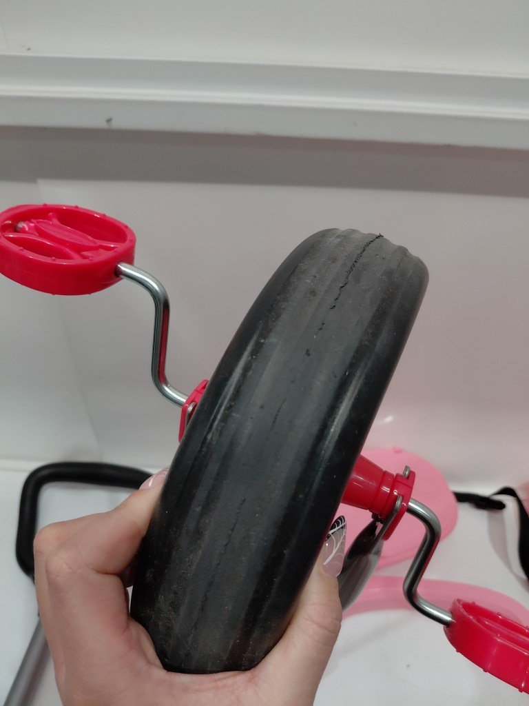 Some markings on wheels from previous use, Item has no hardware will need generic hardware to complete (see photos)