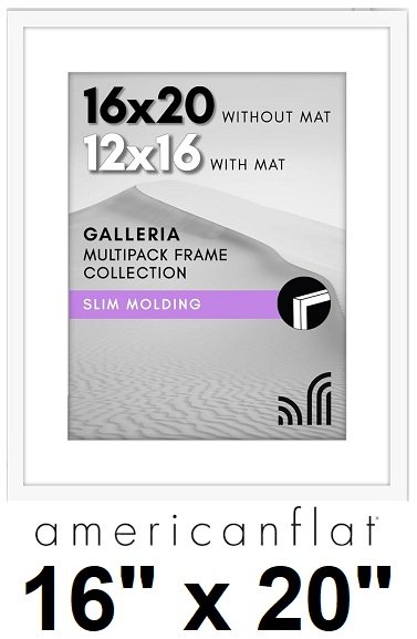 Americanflat Picture Frame with Polished Plexiglass - 16" x 20", 12" x 16" with border - white