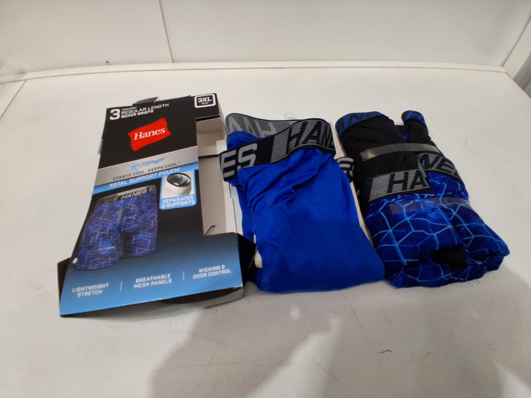 3pk men's hanes x-temp utility pocket boxer briefs with total support pouch - 3XL - blue, black