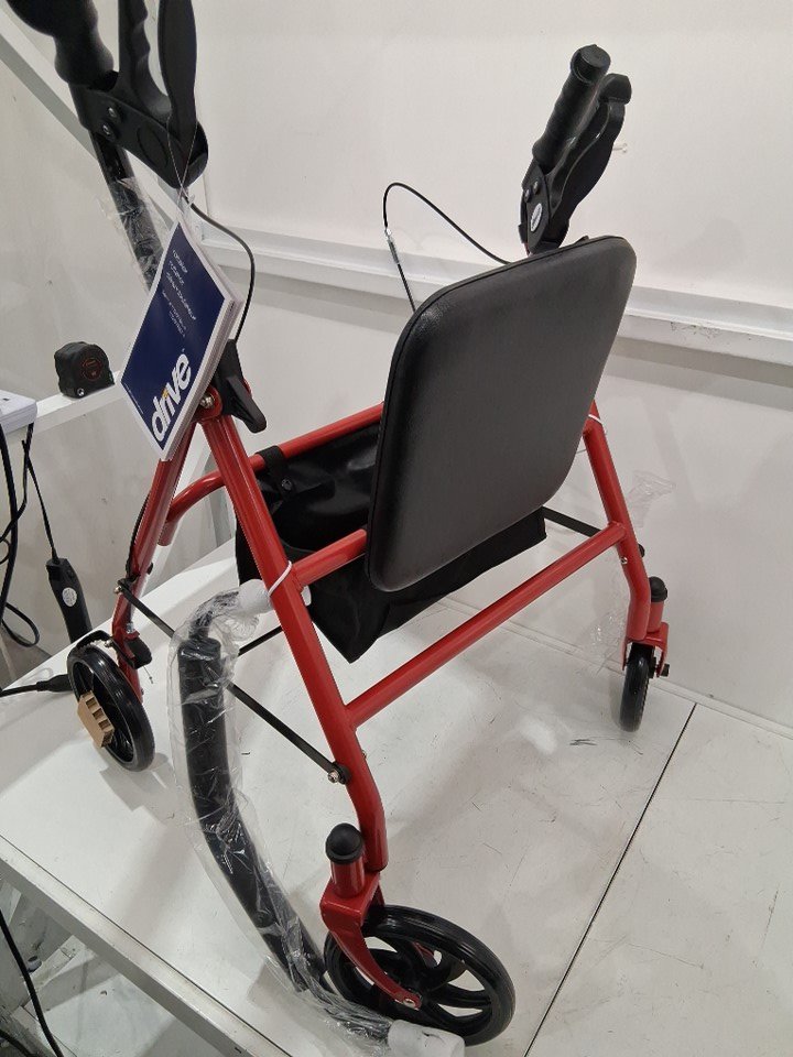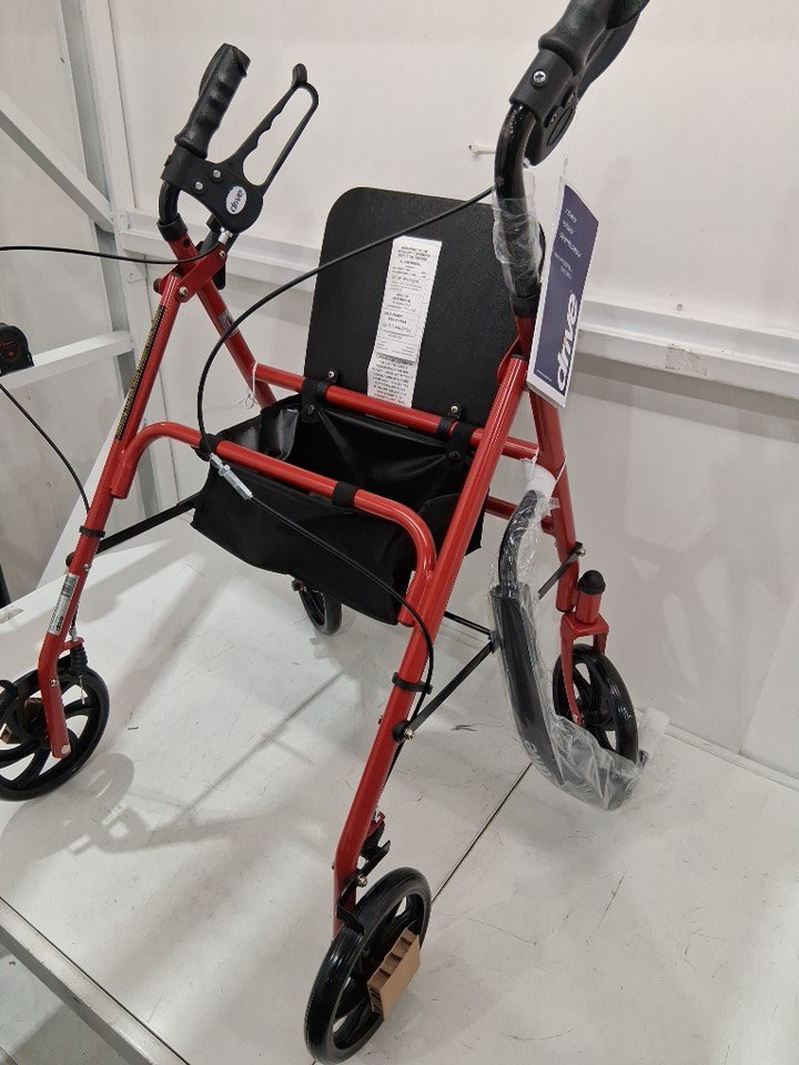 DRIVE MEDICAL 4 WHEEL ROLLATOR WALKER STURDY STEEL FRAME WITH BASKET FOR PERSONAL ITEMS 7.5" CASTER WHEELS IDEAL FOR INDOOR AND OUTDOOR USE - RED (MODEL: 10257RD-1)