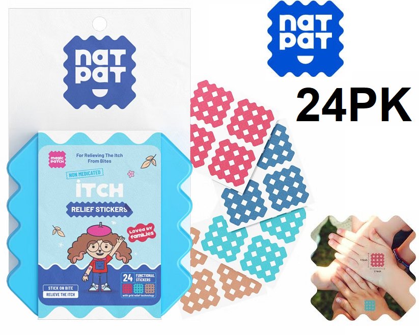 24PK NATPAT MAGIC ITCH RELIEF STICKERS WITH CASE - ASSORTED COLOURS
