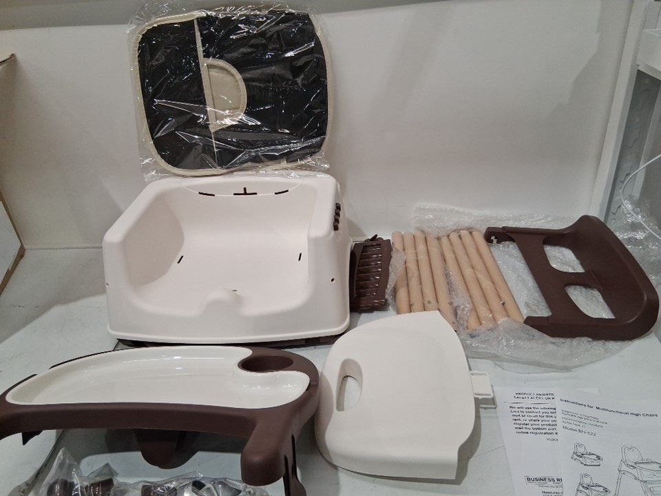 3-IN-1 babimoni Highchair with Footrest and Double Tray 0-36M - BEIGE/brown (MODEL: BH-522)