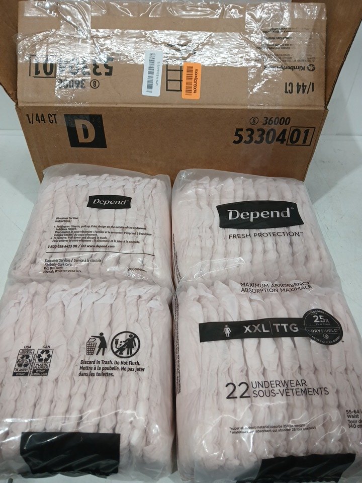 2 (22PK) WOMEN'S DEPENDS Incontinence Underwear - Maximum Absorbency - XXL - Blush,