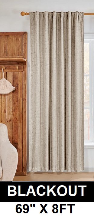 (1 panel) Back Tab Rod Pocket Blackout CURTAINS - 69" X 8FT - beige