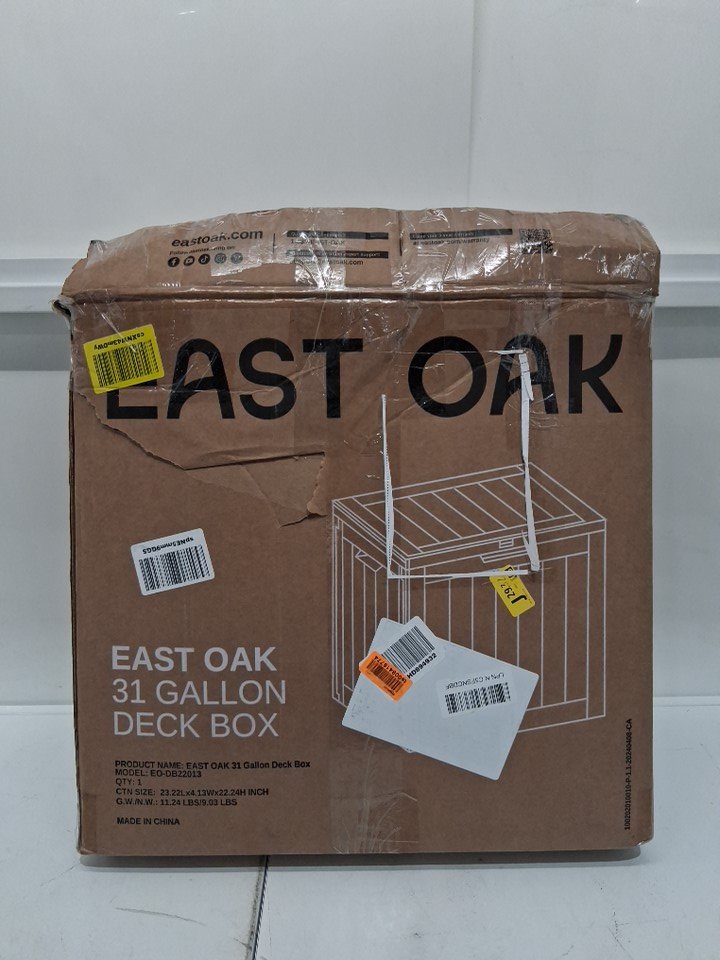 EAST OAK Deck Box, 31 Gallon Indoor and Outdoor Storage Box with Padlock