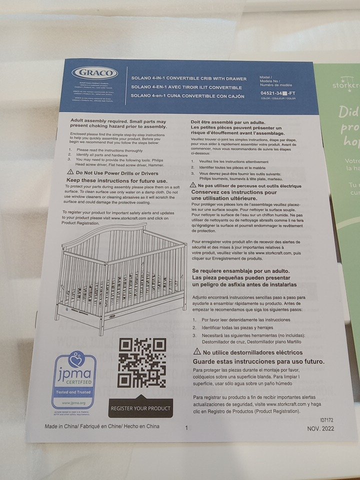 Storkcraft Graco Solano 4-in-1 Convertible Crib with Drawer - white (model:04521-341-ft)