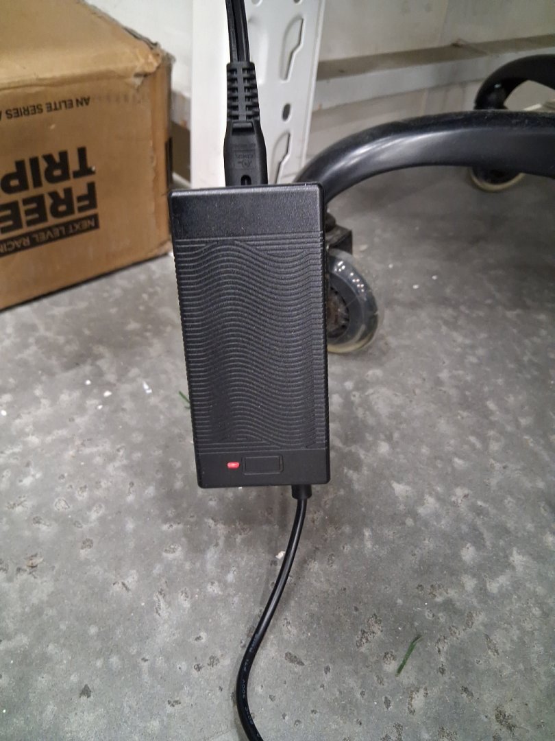 Tested for power, charger charges and scooter powers, moves, and breaks work, see photos