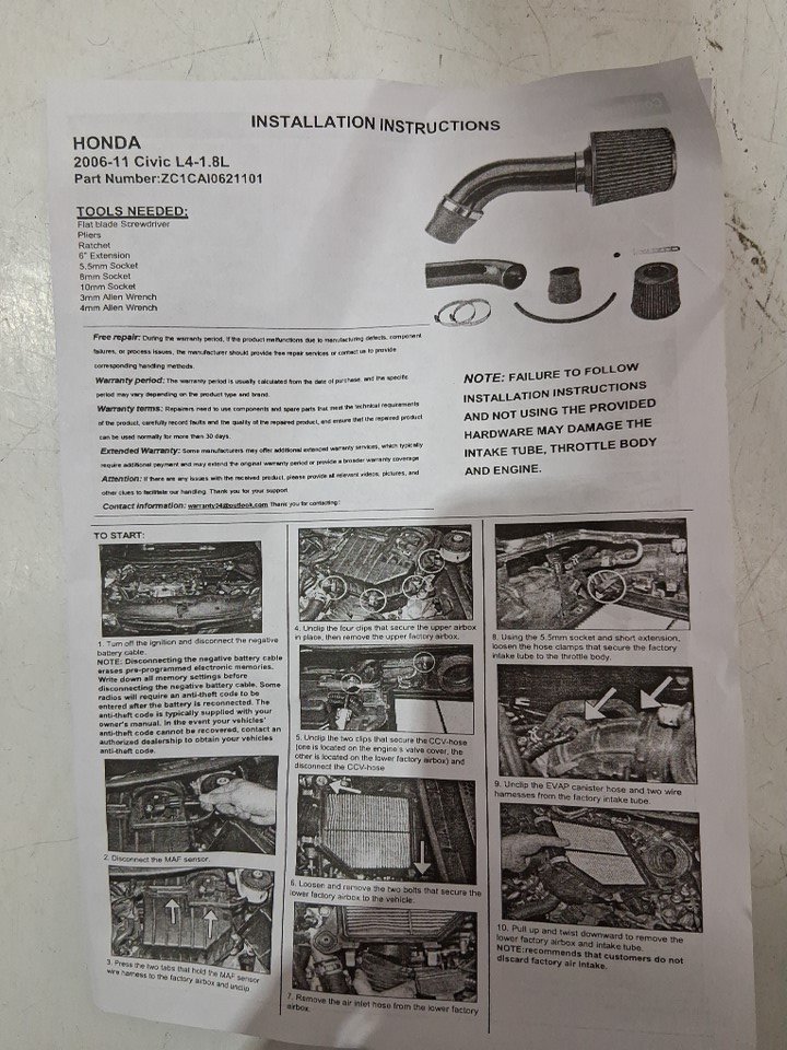 torchbeam cold air intake aluminum filter systems kit for honda 2006-2011 civic l4-1.8l - red