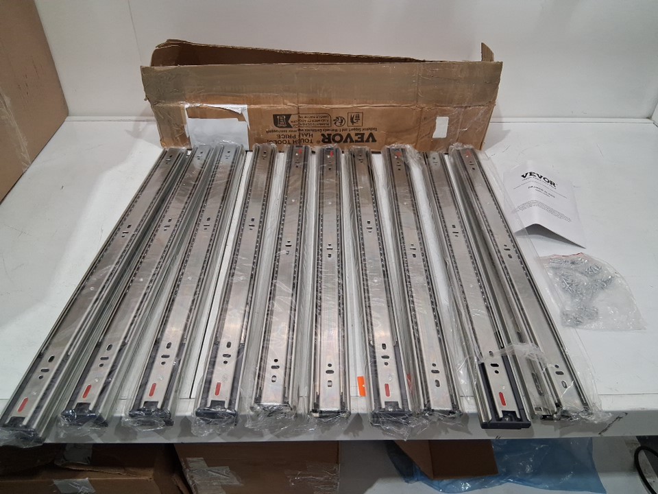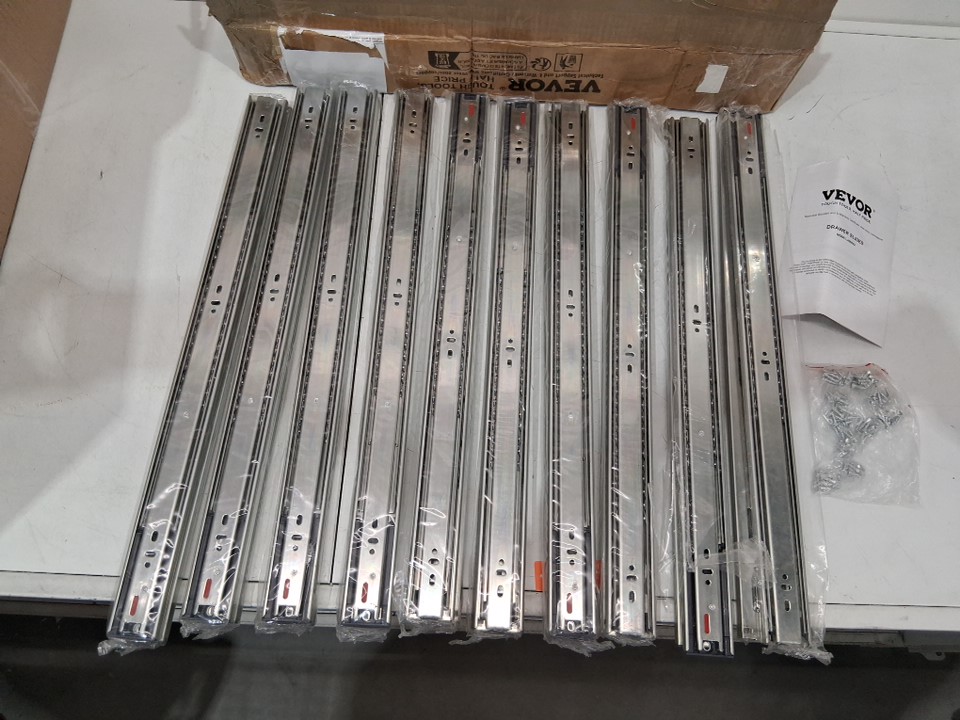10PK vevor heavy duty drawer slides with soft close - 24" - 100lb max load - silver (model: 4605s2.600-10)