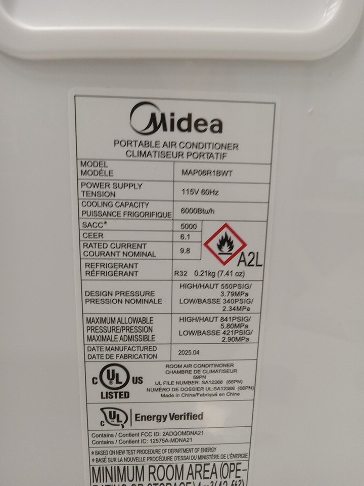 Midea Portable Air Conditioner with Dehumidifier and Fan Mode with Remote Control and LED Display with 24‑Hour Timer – 6,000 BTU - 150 SQ.FT - WHITE (MODEL:MAP06R1BWT)