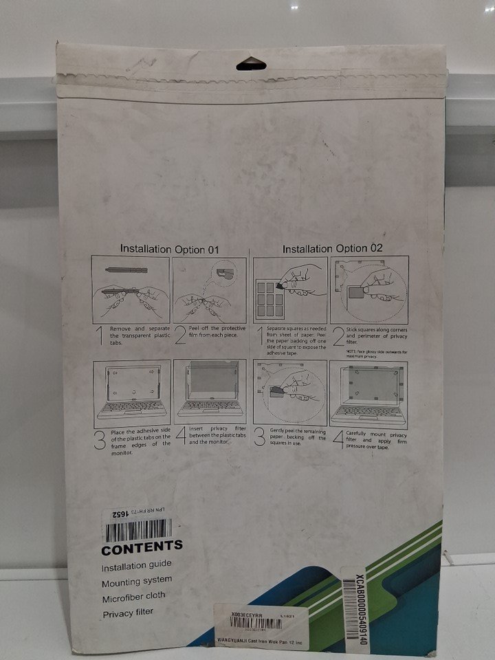 PRIVACY filter FOR LAPTOPS, TABLETS, MONITORS & OTHER SCREENS - 12" WIDE SCREEN