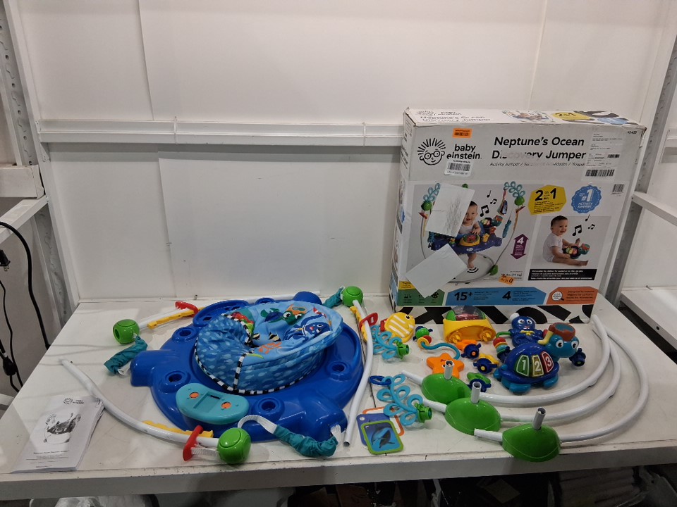 Baby Einstein Neptune's Ocean Discovery Jumper with Adjustable Height - 15+ multi-sensory toys/activities - 4 languages - Multi-colour (Model: 10455)