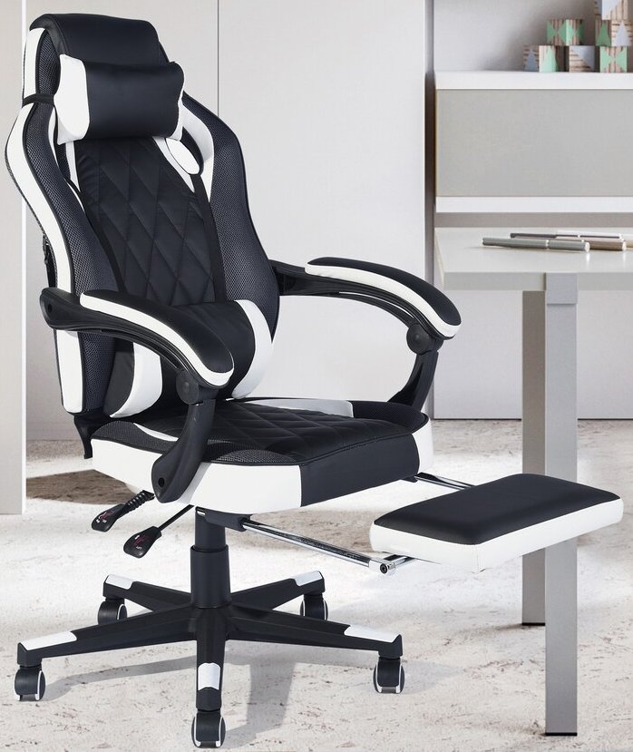 Homy Casa Faux Leather Burgendy Gaming Chair With Footrest - White/Black (Model: 0100300006145)