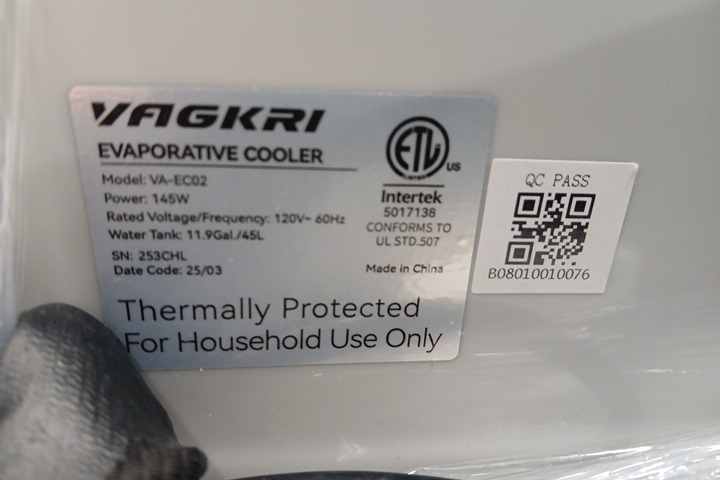 VAGKRI 3000CFM Evaporative Air Cooler, 120°Oscillation, with Remote Control, 24H Timer, 3 Wind Speeds, 12gal - white (model: VA-ec02)