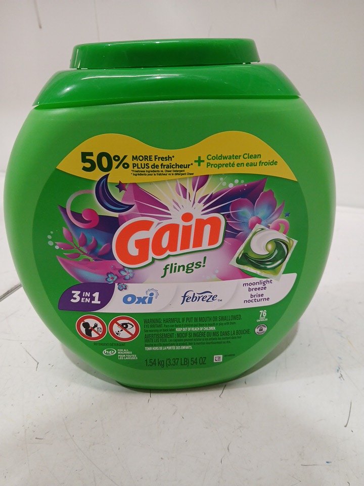 76pk GAIN FLINGS! 3-IN-1 LAUNDRY detergent PODS with oxi boost and febreeze - MOONLIGHT BREEZE SCENT