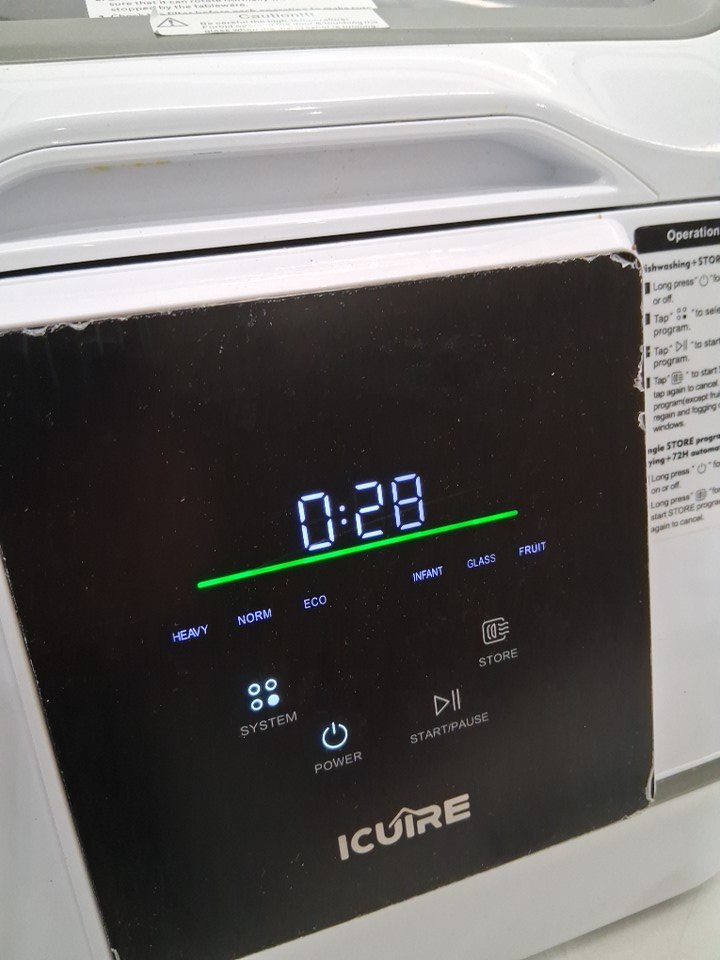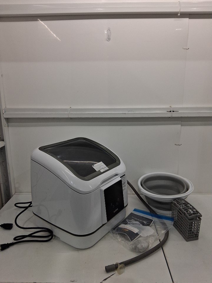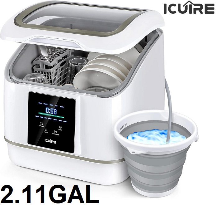 ICUIRE Portable Dishwasher Countertop (No Hookup Needed) - 7 Washing Programs - 360°Spray - Hot Air-Dry Function - WHITE / GREY (MODEL: ICD4WUP01)