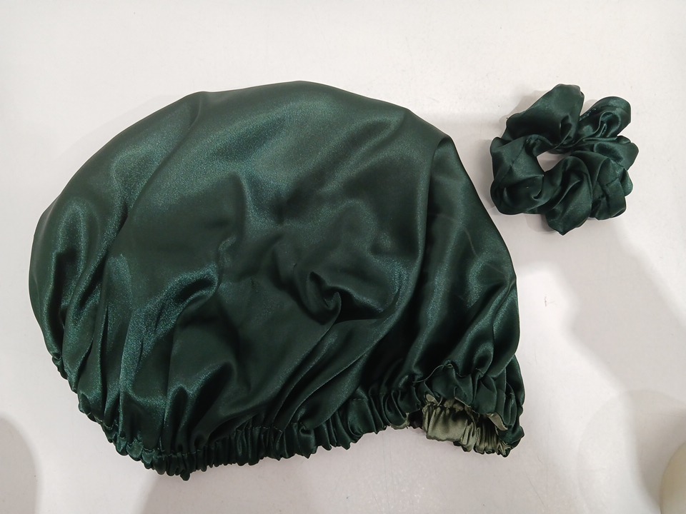 2PC YANIBEST REVERSIBLE SATIN SILK HAIR BONNET with Scrunchie - OSFM - GREEN