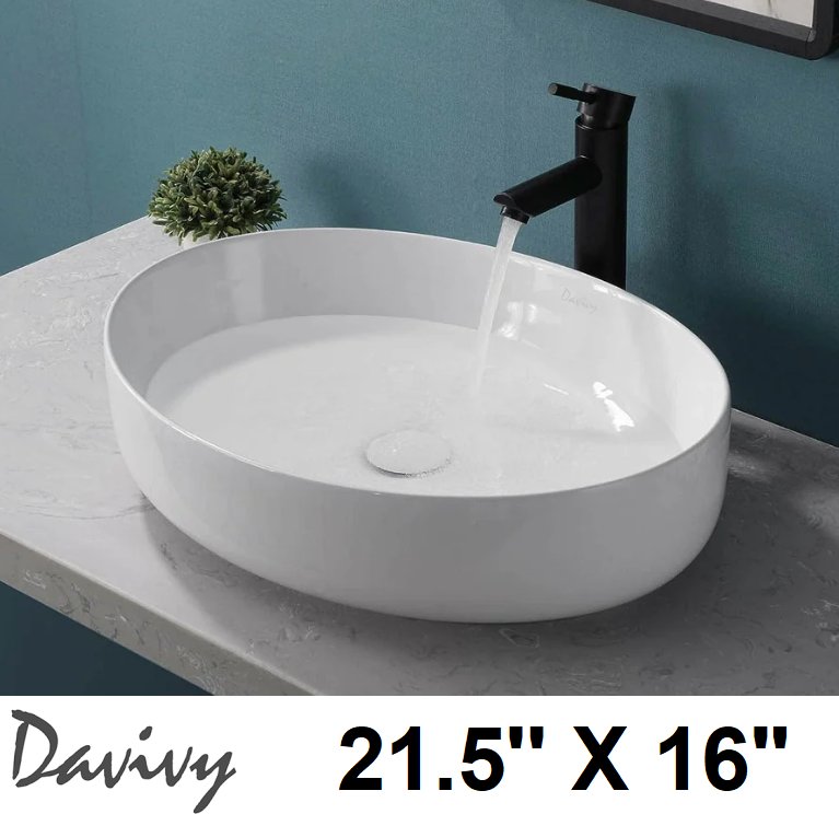 Davivy Bathroom Ceramic Oval Vessel Sink with Pop Up Drain - 21.5'' X 16" - white - Model: ds-0919)