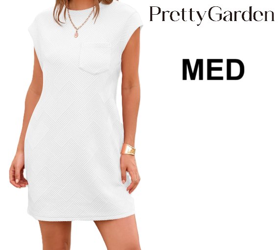 WOMENS PRETTYGARDEN Short T Shirt Dress WITH Cap Sleeve - MEDIUM - WHITE