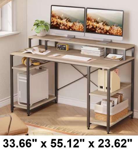 Bestier Computer Desk with Monitor Stand - Light Oak (model: D074G-OAK)