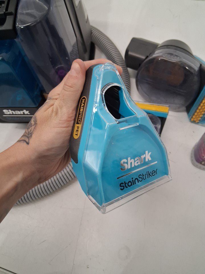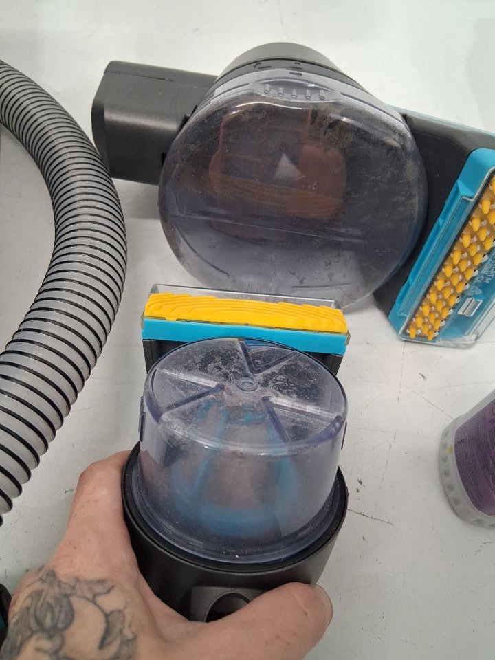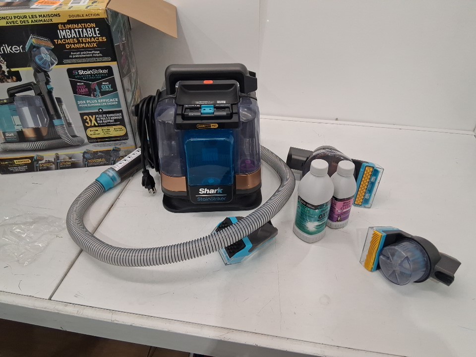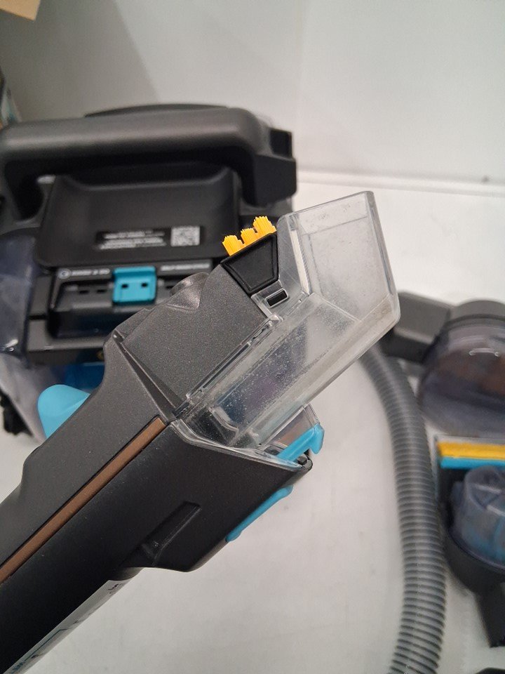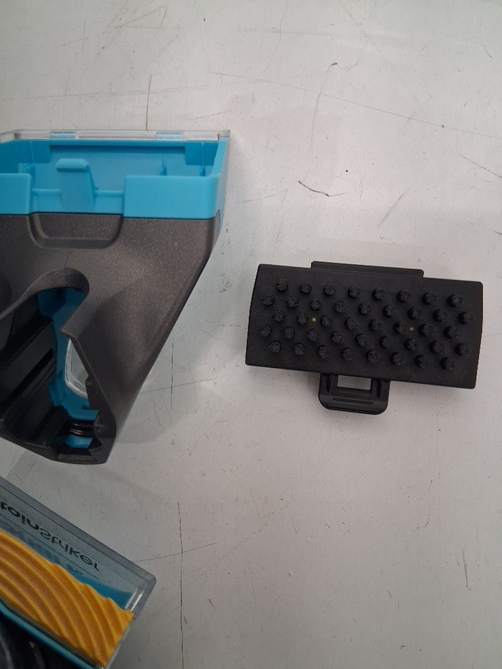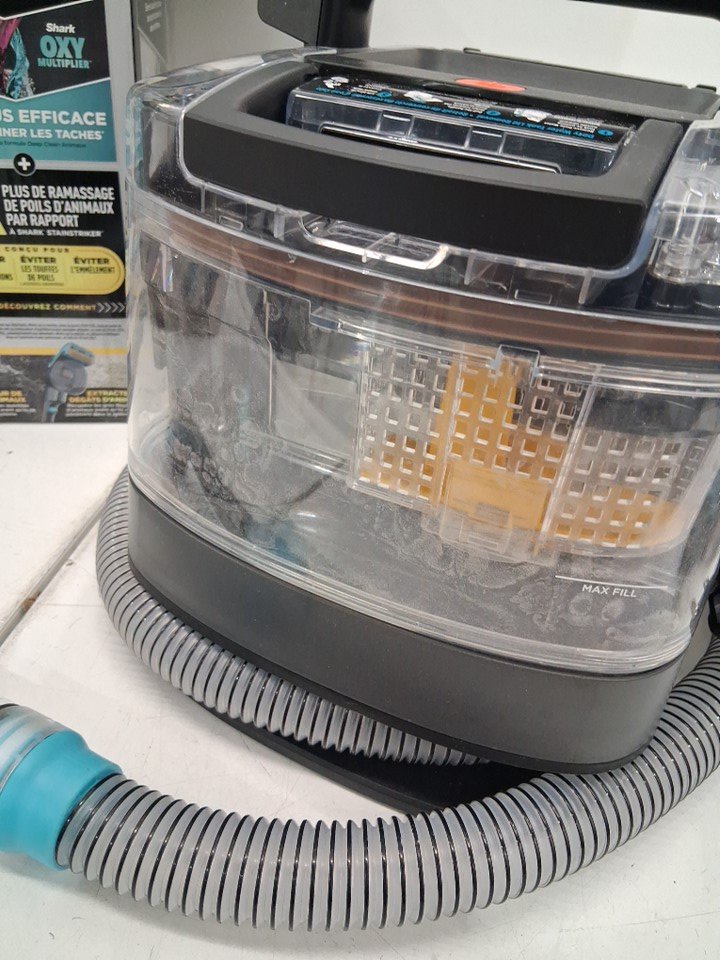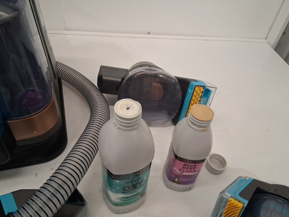 Spot cleaner has small traces of water in chambers. steam attachments have dirt and water spots on them. Chemicals have been opened. Has been tested for power (no indicator light)