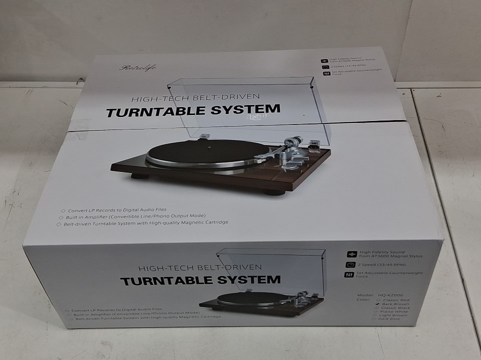RETROLIFE TURNTABLE VINYL RECORD PLAYER - BLUETOOTH COMPATIBLE - bark brown (MODEL: HQ-KZ006)