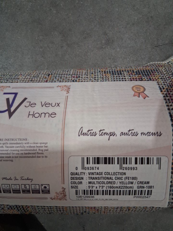 *GENERIC CONDITION STATEMENT* PLEASE BE AWARE THAT THE STOCK IMAGE USED MAY NOT 100% RESEMBLE THE COLOUR OF THE ITEM BEING SOLD. The images used and sizes given are taken from the online retailer. Rug has been inspected by our staff and laid out on our warehouse floor for full inspection and photos. Due to this nature of handling there might be light dirt or dust on the item from handling or storage in our facility at time of pick up.
