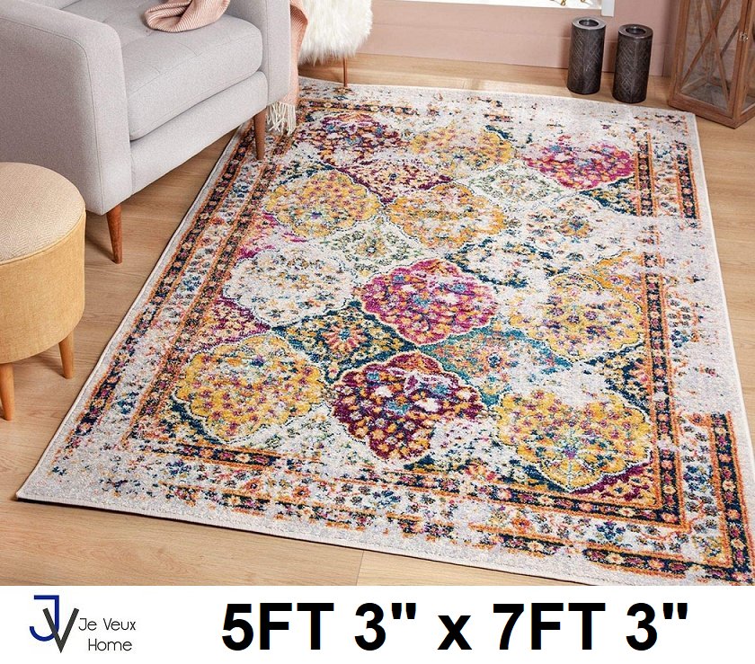 JV Home Vintage Collection Distressed | Transitional Chic Area Rug - 5FT 3" x 7FT 3" - Multi/Yellow/Cream (FE180)