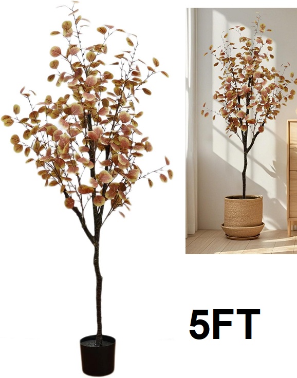 MilleLoom Artificial Fall Eucalyptus Tree - 5 ft - Fall Eucalyptus Tree
