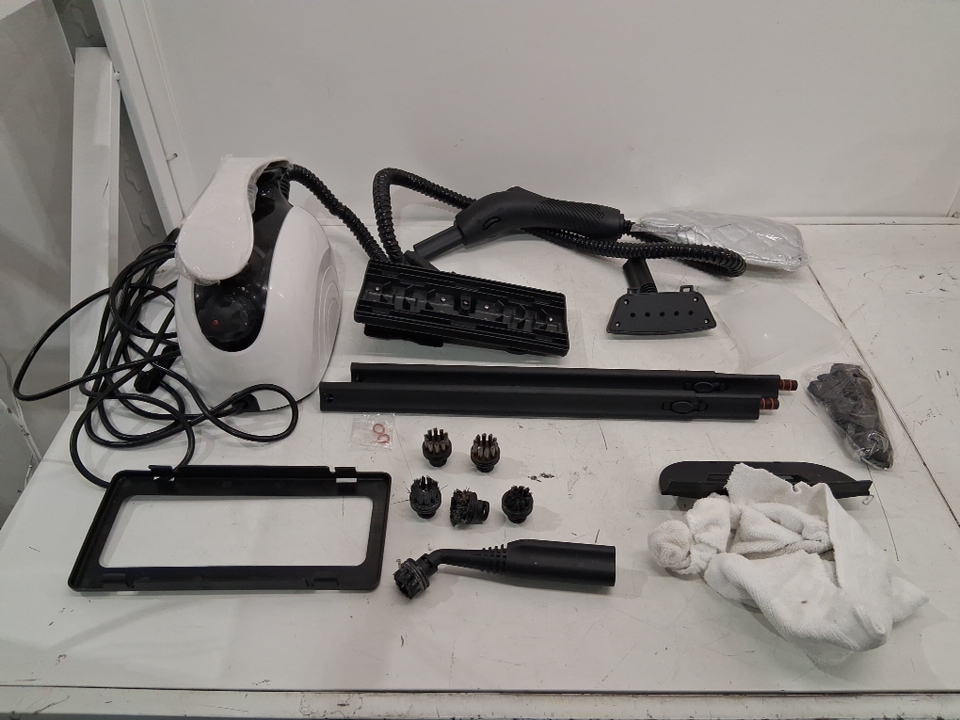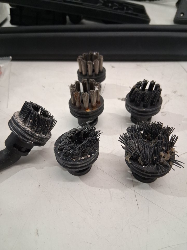 Tested for power. Please note the cleaner shows signs of previous use with debris in the brushes and some hard water buildup inside, see photos.