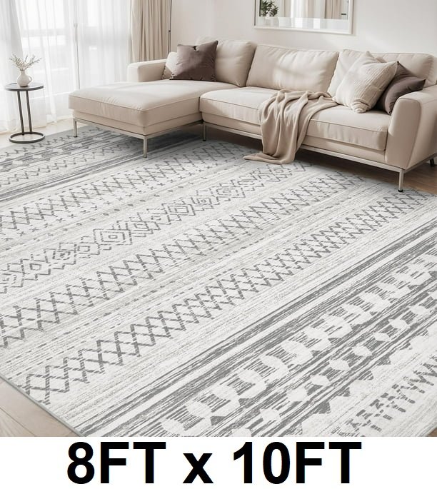 boho modern machine washable stain resistant area rug - 8ft x 10ft - grey