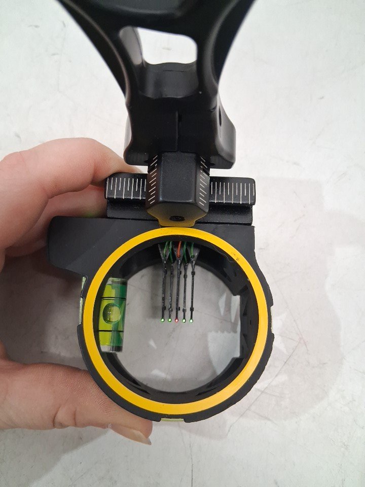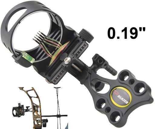5 Pin ARCHERY Bow Sight WITH Aluminum Built-in Sight Level & Light Adapter - Pins Fit for Compound Bow and Recurve Bow - 0.19" - BLACK