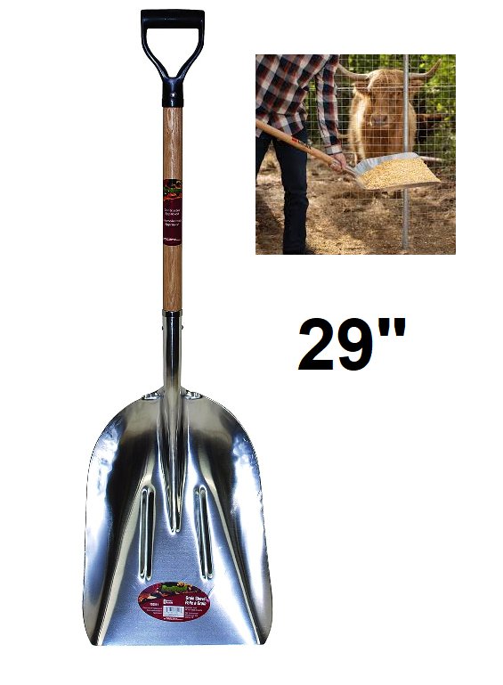 pro-yard aluminum grain shovel with d handle - 29" - beige/silver (model: 130511)