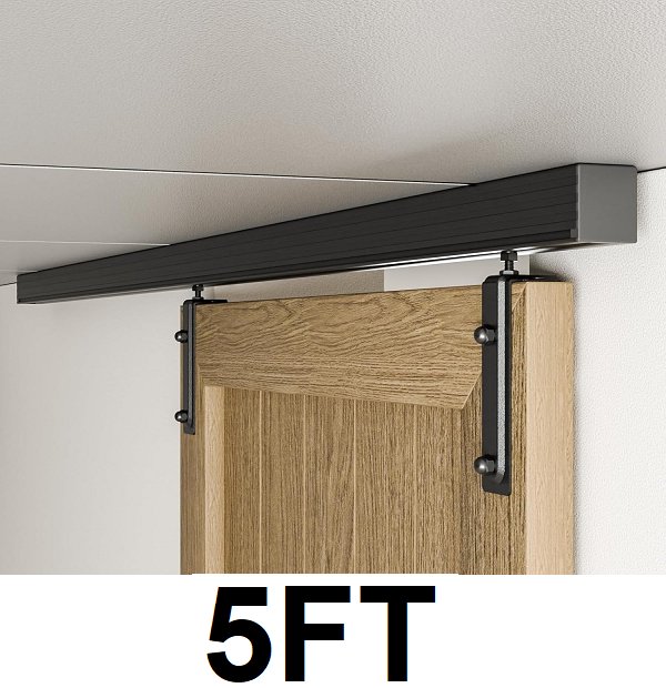 BONIKLUBA Heavy Duty Steel Ceiling Mount Box Rail Barn Door Sliding Track Hardware Kit - 5FT - black