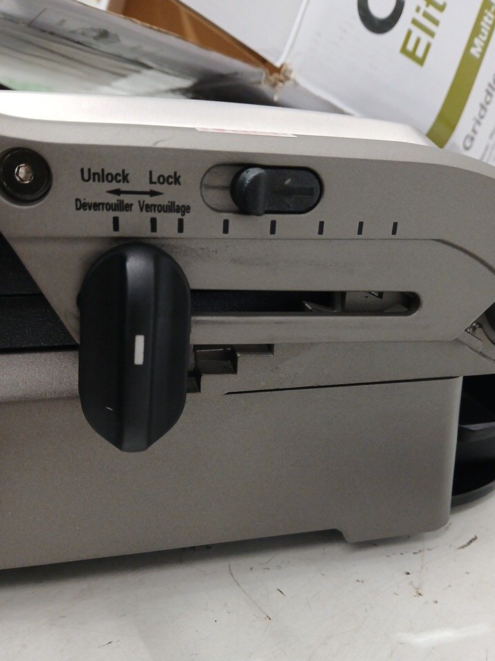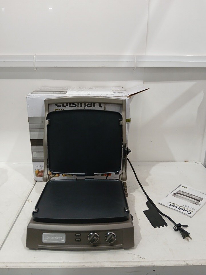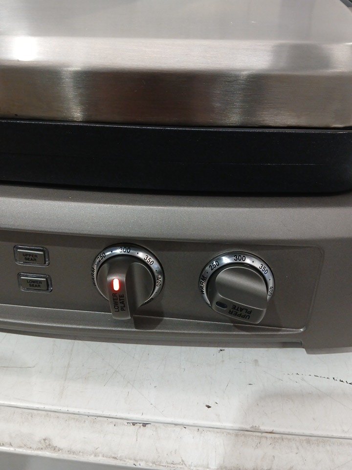 Has some residue under the plates and on/near the hinges. Tested for power.