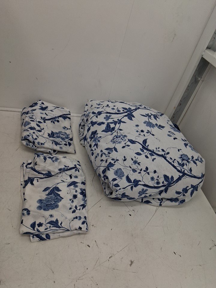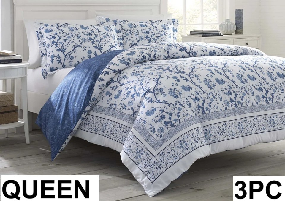 Laura Ashley harlotte Blue Standard Cotton Reversible Duvet Cover Set - QUEEN - BLUE/WHITE