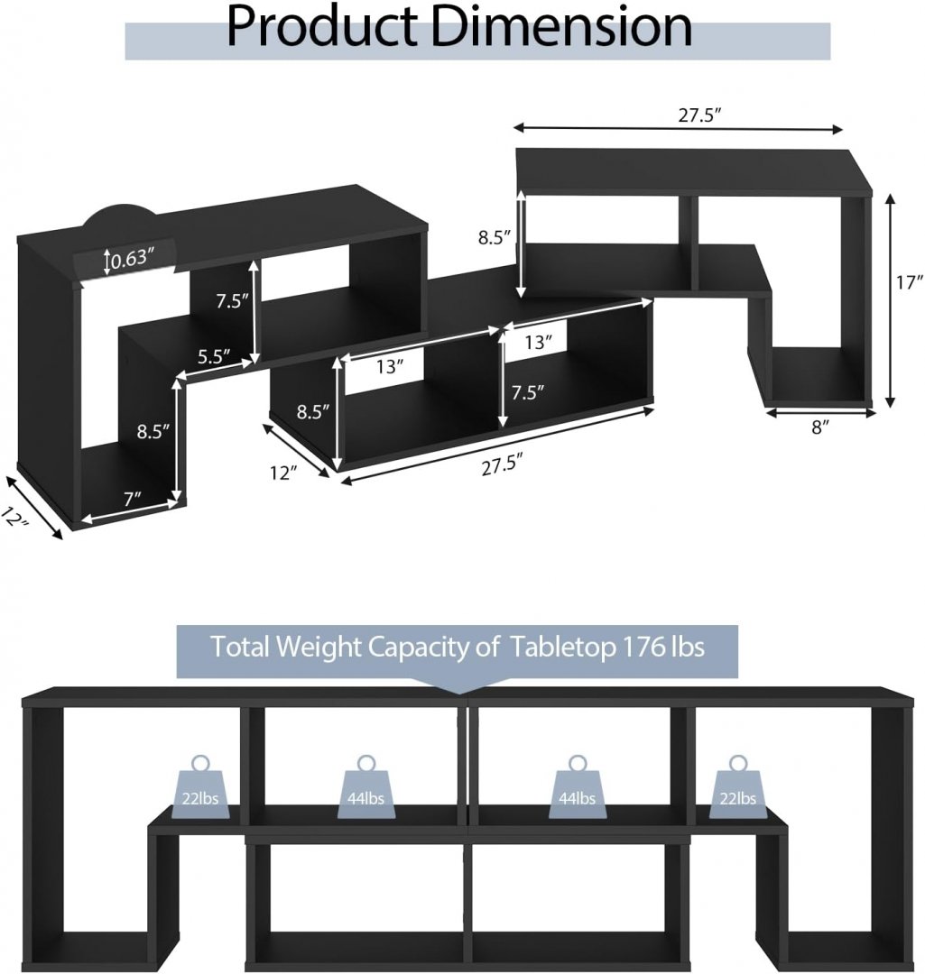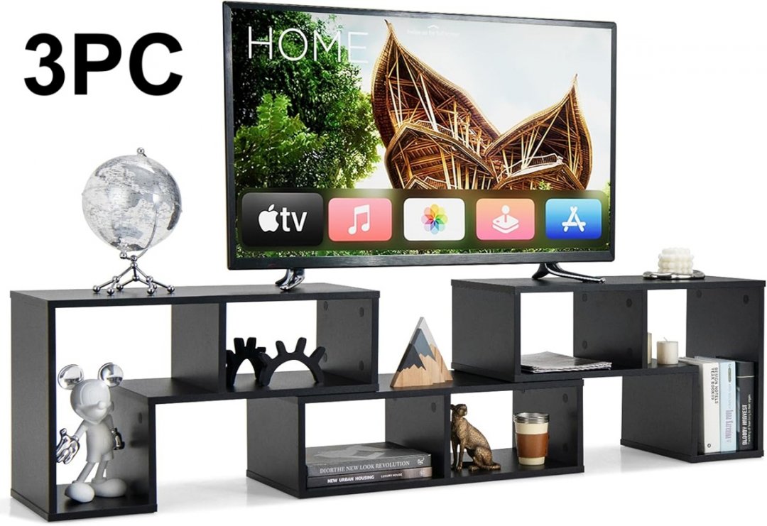 3PC KOTEK free combination bookshelf organizer tv console table - fits tvs 50-65" - black - (model: hv10647dk)