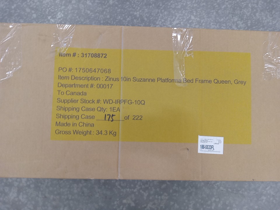 ZINUS 10" GOOD DESIGN WINNER SUZANNE GREY WASH BAMBOO AND METAL PLATFORM BED FRAME - QUEEN (MODEL: WD-IRPFG-10Q)