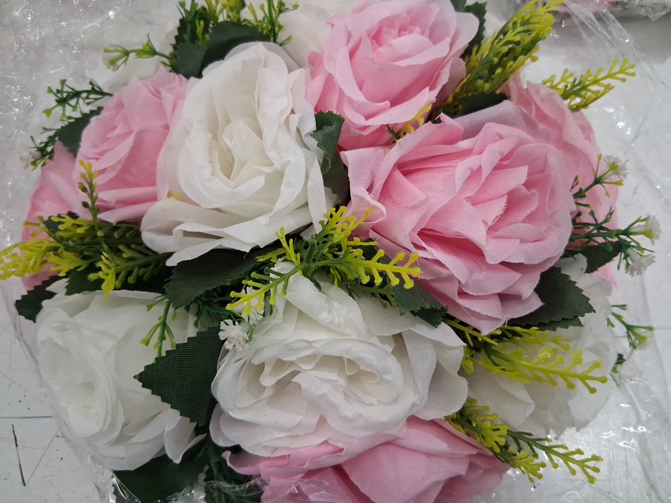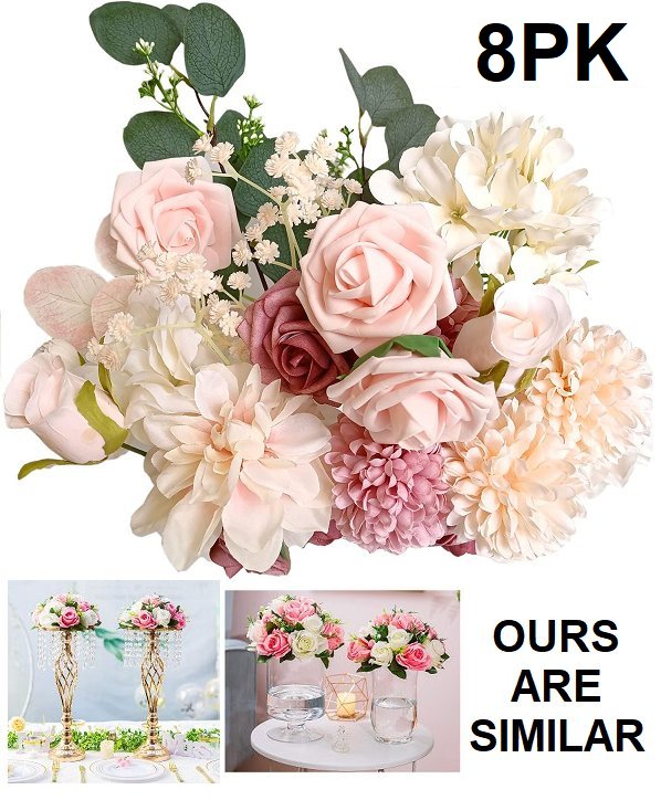 8PK ARTIFICIAL FLOWER BOUQUET ARRANGEMENTS - PINK/WHITE