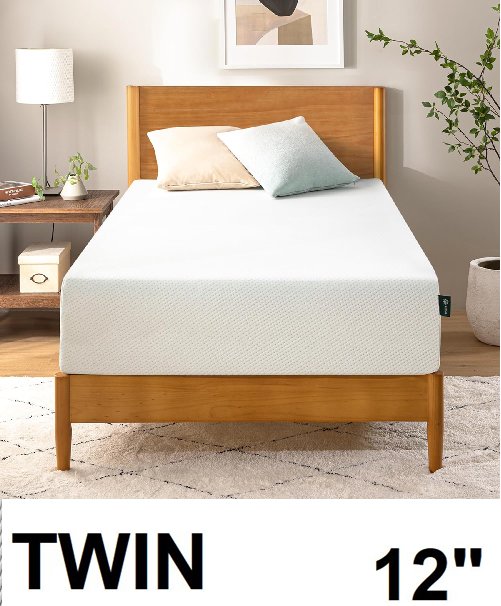 Zinus Gel-Infused Green Tea Memory Foam Mattress - 12" twin - white